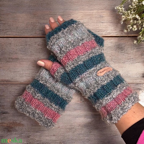 Kézzel kötött csíkos mintás női kesztyű egyedi darab 5728032