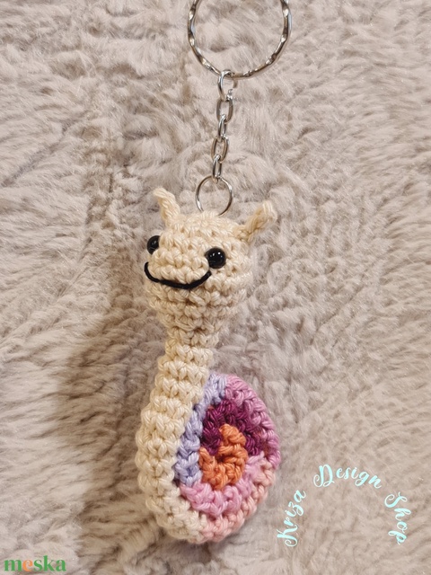 Kézműves horgolt kabalafigurás kulcstartó - Mini csiga (Mirtill)