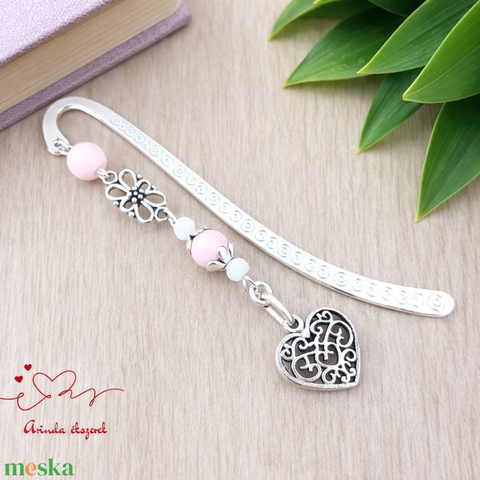 Szív charm könyvjelző pedagógusnapra – rózsaszín gyöngyökkel
