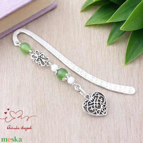 Szív charm könyvjelző pedagógusnapra – zöld gyöngyökkel