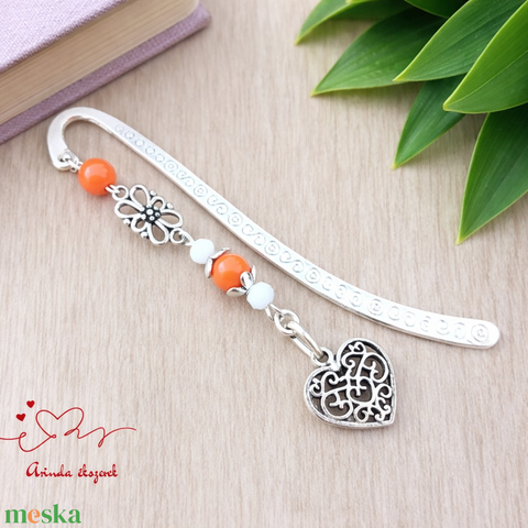 Szív charm könyvjelző pedagógusnapra – narancs gyöngyökkel