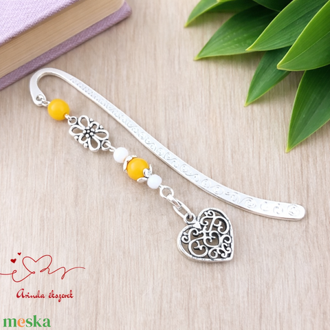 Szív charm könyvjelző pedagógusnapra – citromsárga gyöngyökkel
