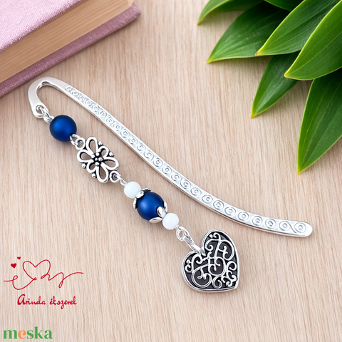 Szív charm könyvjelző pedagógusnapra – sötétkék gyöngyökkel