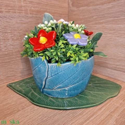 Valentin napi Kerámia virágbox - Nagy türkiz