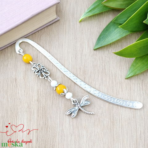 Szitakötő charm könyvjelző óvónéninek évzáróra – sárga gyöngyökkel