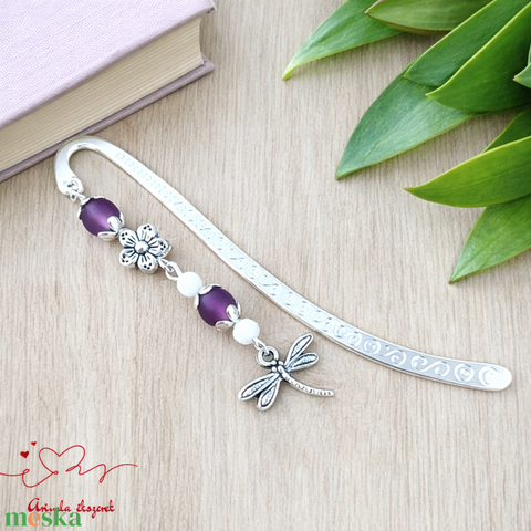 Szitakötő charm könyvjelző óvónéninek évzáróra – lila gyöngyökkel