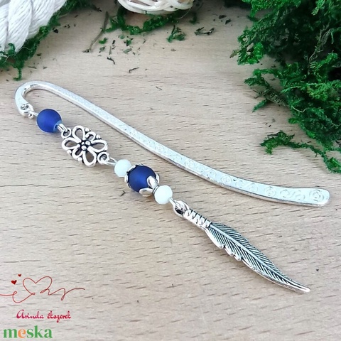Toll charm könyvjelző – sötétkék gyöngyökkel, pedagógusnapi ajándék