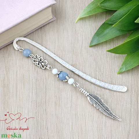 Toll charm könyvjelző – szürke gyöngyökkel, pedagógusnapi ajándék