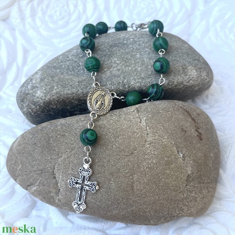 Autós rózsafüzér, tizedes rózsafüzér zöld malachit ásványból