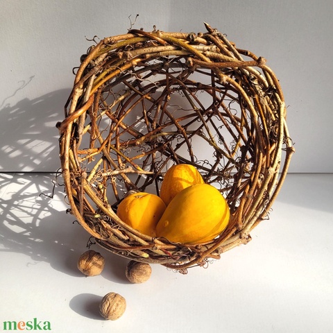 Kézműves vadszőlő kosár – természetes évszaknak megfelelő dekoráció (20×20 cm) - tavasz, nyár, ősz, tél
