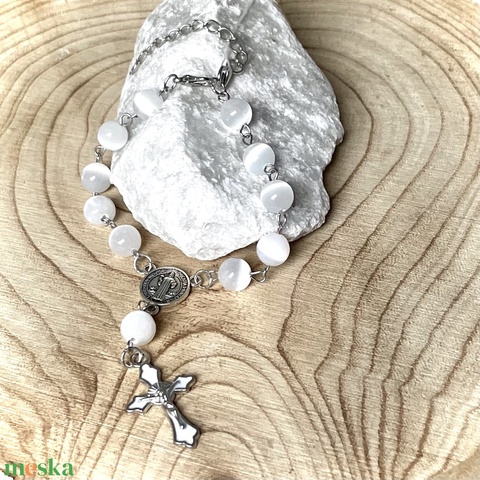 Autós rózsafüzér, tizedes rózsafüzér szelenit ásványból kérésre Szent Kristóf medállal
