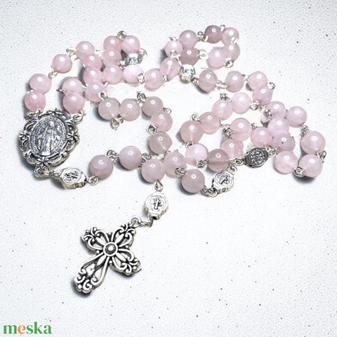 Rózsakvarc rózsafüzér keresztelő ajándék ajándékdobozzal