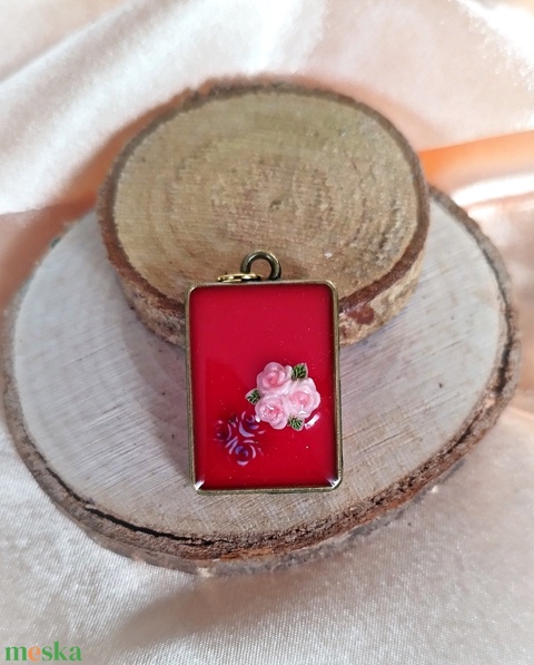Piros nőies medál rózsákkal