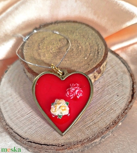 Szív alakú női medál rózsával