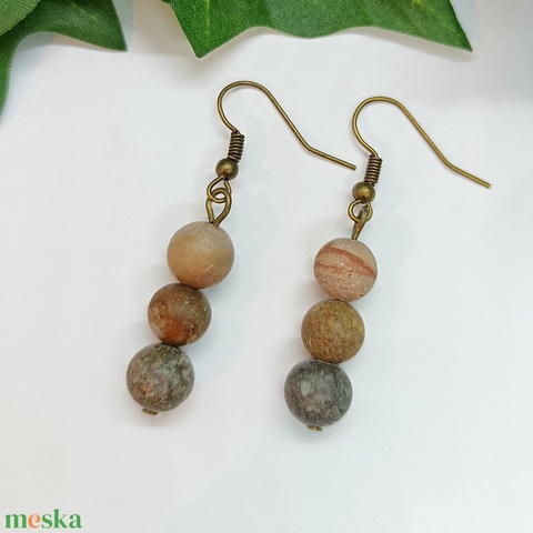 Matt amerikai jáspis ásványgyöngyös, lógós fülbevaló