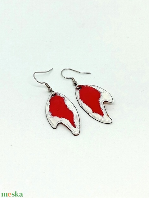 Fülbevaló piros fehér tűzzománc