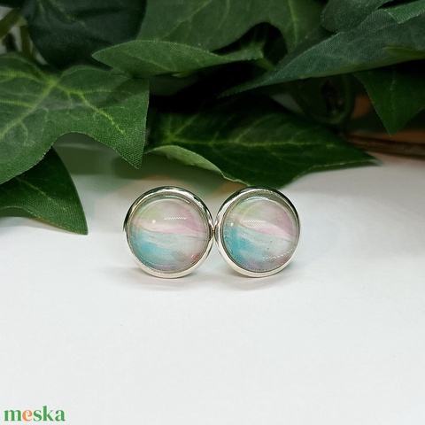 Világoszöld és rózsaszínű márvány mintás pötty fülbevaló
