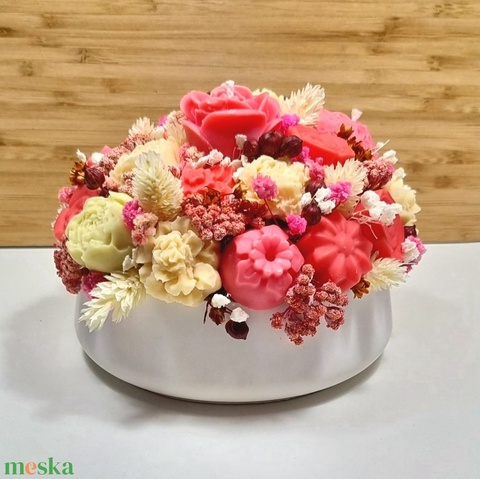 - Anyaga: kerámiapor, viasz, szárítottvirág