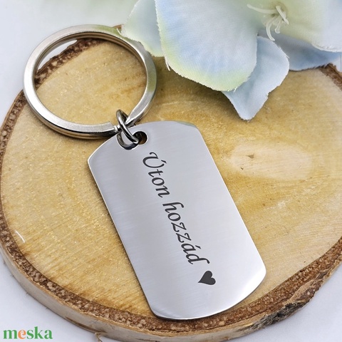 Gravírozott kulcstartó saját felirattal - téglalap medállal
