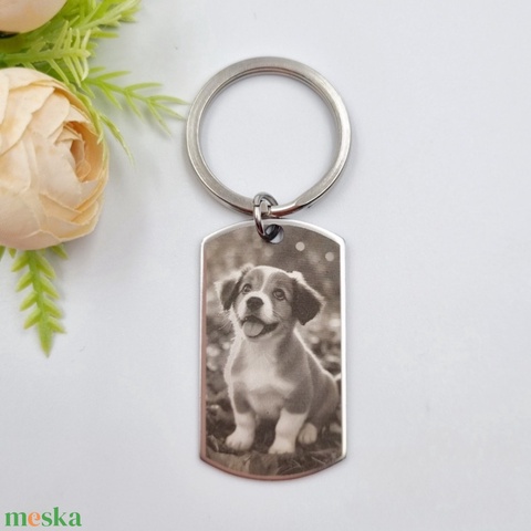 Saját fényképes gravírozott kulcstartó - téglalap medál kulcskarikán