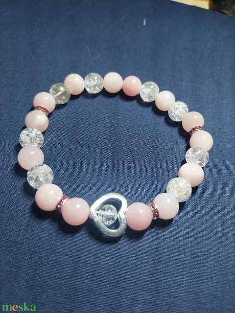 Rózsakvarc és helyikristálybol készült karkötő igény szerint méretre füzöm