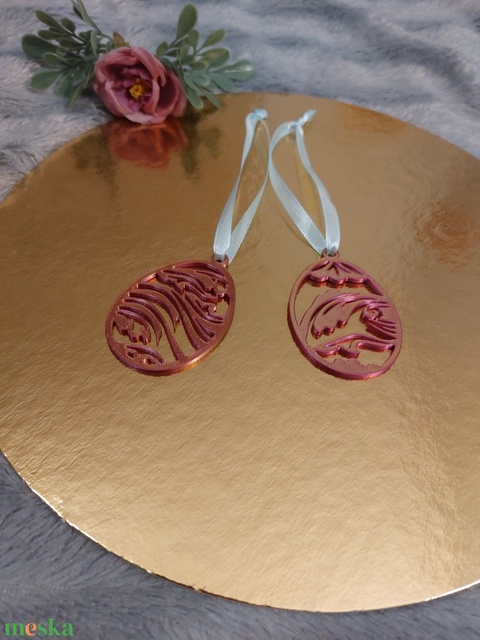 Színjátszó húsvéti tojás dísz – rózsaszín-arany dekoráció szalaggal 2 db-os csomagban