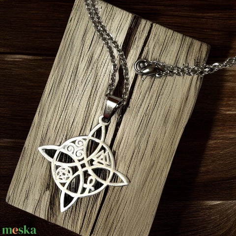Elegáns, ezüstszínű nemesacél nyaklánc finom lánccal és részletgazdag, kelta ihletésű medállal. Az összefonódó motívumok az egységet és a harmóniát jelképezik, így tökéletes választás mindennapi viselethez vagy ajándéknak. A medál 3 cm-es, a lánc 50 cm hosszú.