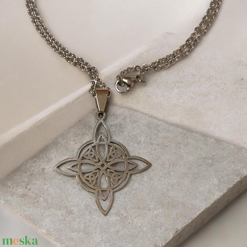 Nemesacél kelta csomó szimbólum medálos nyaklánc ajándékdobozzal ezüstszínű