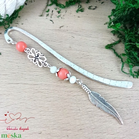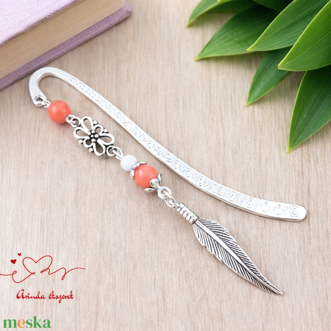 Toll charm könyvjelző – narancs gyöngyökkel, pedagógusnapi ajándék