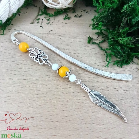 Toll charm könyvjelző – sárga gyöngyökkel, pedagógusnapi ajándék