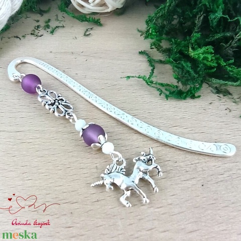 Unikornis könyvjelző – lila gyöngyökkel, varázslatos szülinapi ajándék gyerekeknek