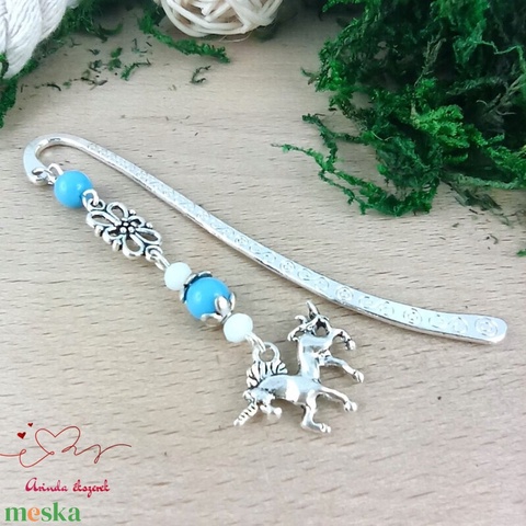 Unikornis könyvjelző – kék gyöngyökkel, varázslatos szülinapi ajándék gyerekeknek