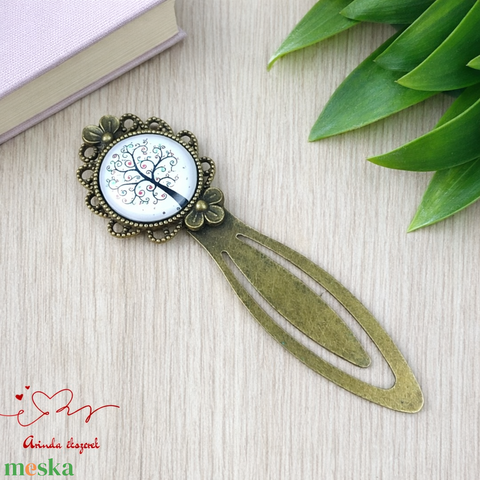 Életfa üveglencsés könyvjelző – bronz színű, kézzel készült