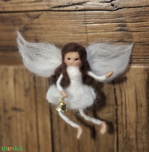Az angyal tűnemez technikával kézzel készült, természetes gyapjúból.
