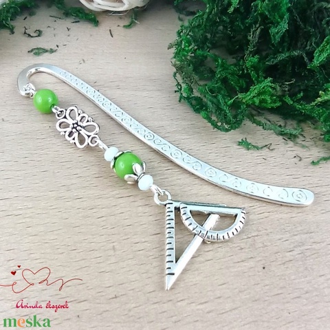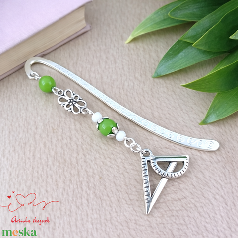 Vonalzó könyvjelző – zöld gyöngyökkel, kézzel készült tanári ajándék