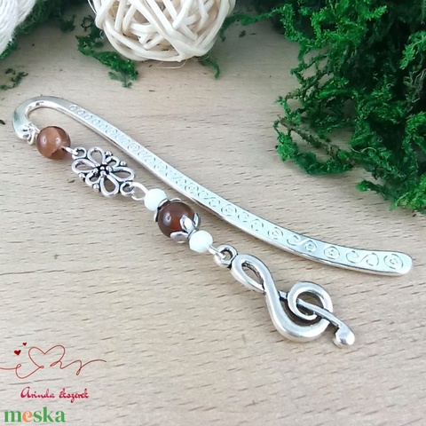 Violinkulcs könyvjelző – barna gyöngyökkel, évzáró ajándék pedagógusnak