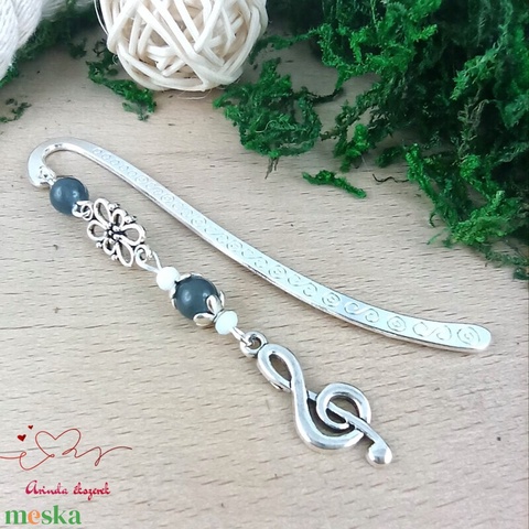 Violinkulcs könyvjelző – szürke gyöngyökkel, évzáró ajándék pedagógusnak