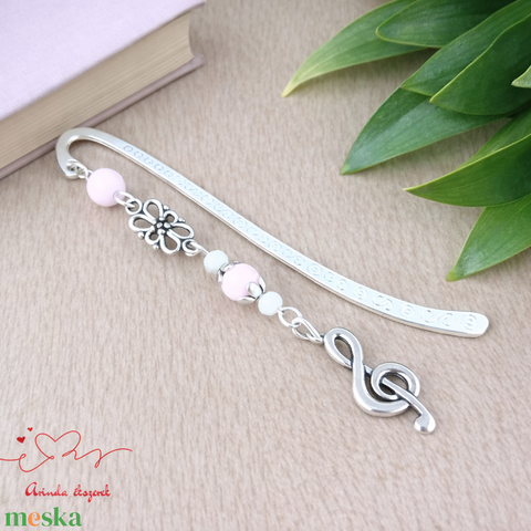 Violinkulcs könyvjelző – rózsaszín gyöngyökkel, évzáró ajándék pedagógusnak
