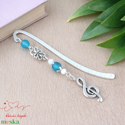 Violinkulcs könyvjelző – világoskék gyöngyökkel, évzáró ajándék pedagógusnak