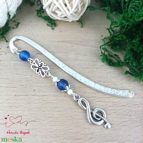 Violinkulcs könyvjelző – sötétkék gyöngyökkel, évzáró ajándék pedagógusnak