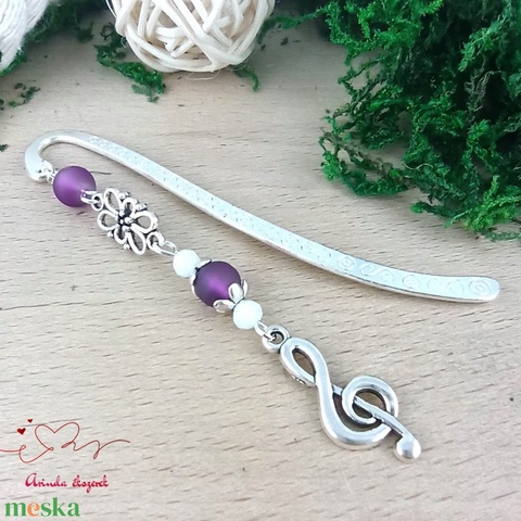 Violinkulcs könyvjelző – lila gyöngyökkel, évzáró ajándék pedagógusnak