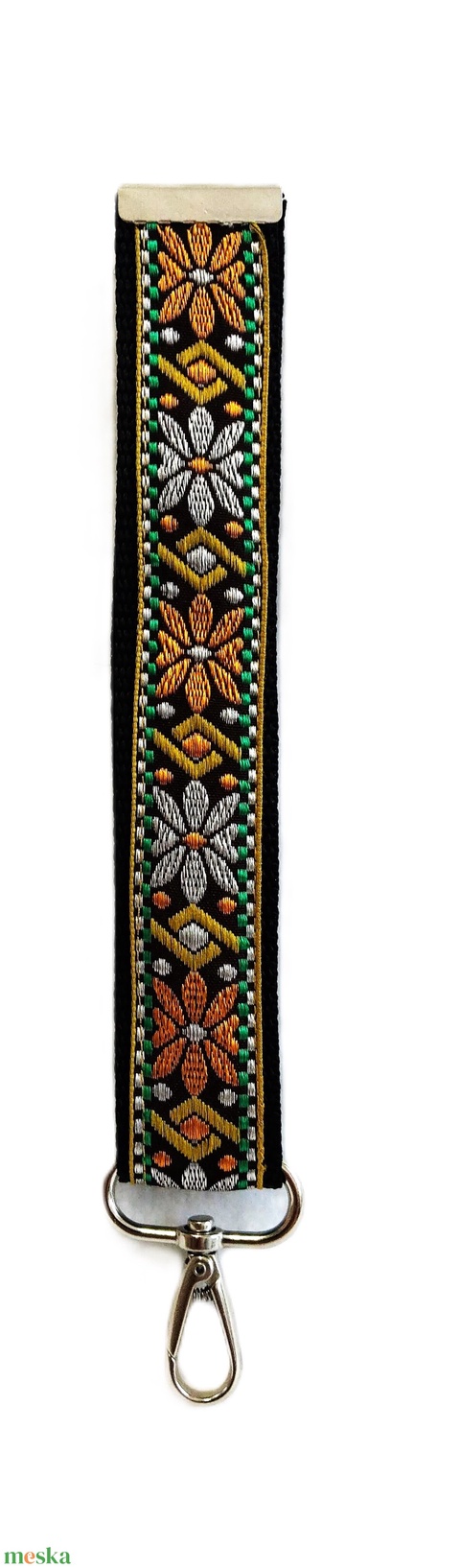 Narancs-zöld virágos motívumos vízhatlan gyöngyvászonkulcstartó