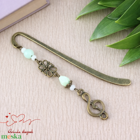 Violinkulcsos könyvjelző – zöld árnyalatban, zenekedvelőknek