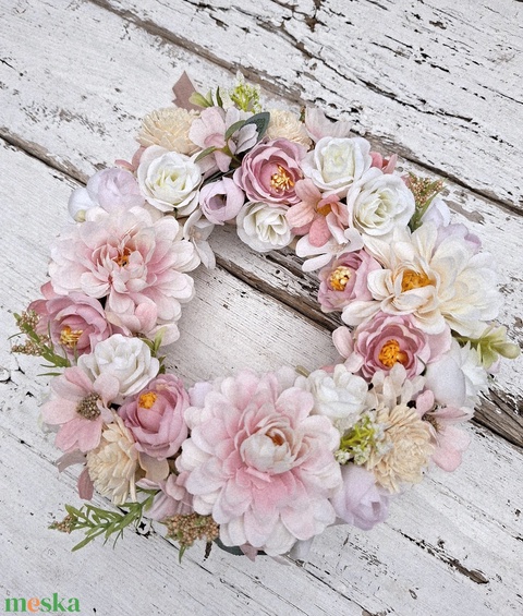 Rózsaszín, krém virágos tavaszi, nyári koszorú, dekoráció- Azonnal vihető!