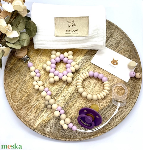 - Anyag/Összetevő szaténzsinór, orvosiszilikongyöngy, bükkfa