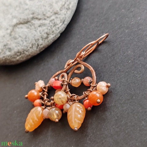 vörösréz drót, achát, édesvízi tenyésztett gyöngy, aventurin, rutilkvarc, korall, hilulit