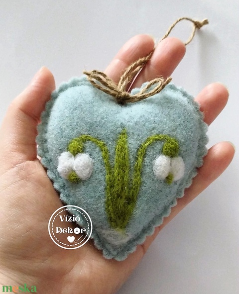 Tűnemezelt hóvirágos szív világos melír kék