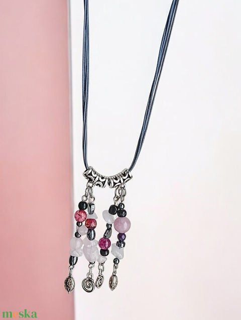 Ásvány díszes szürke, rózsaszín nyaklánc nyaklánc