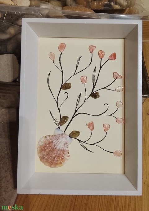 Féldrágakő falikép kagyló és ásványköves