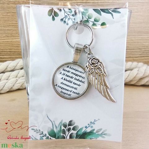 Angyalszárny medálos üveglencsés kulcstartó pedagógusnapra